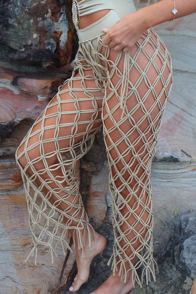 Macramé Pants are a handmade masterpiece, crafted by skilled Colombian artisans. With their relaxed fit and flowing texture, they pair effortlessly with your Velvet bikini for an all-day elegant beach-to-bar look.