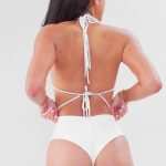 The pristine white color fabric exudes a sense of purity and sophistication, evoking images of sun-kissed shores and pristine beaches. Whether you're lounging by the pool or soaking up the sun on the beach, this exquisite swimwear piece is sure to make a statement.