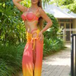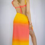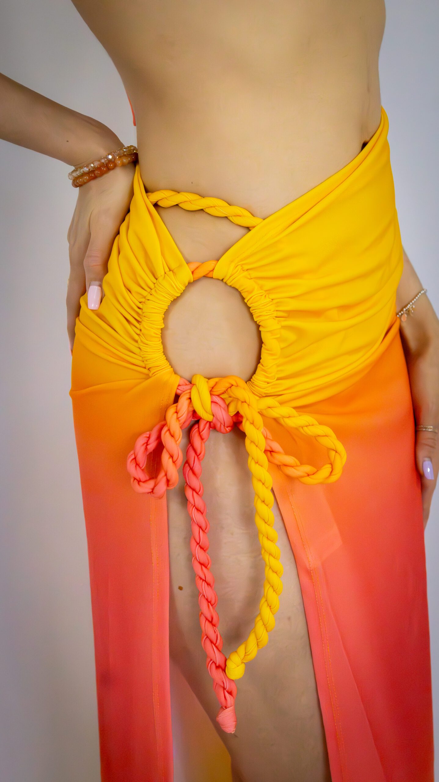 A vibrant ombré wrap skirt in sunrise tones, designed to complement the TROPI SUNRISE bikini. Light, flowy, and tropical.