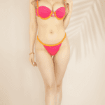 A soft rose-pink bikini with braided straps and golden accents, designed to highlight your natural glow. A delicate yet powerful piece from our PALMAH Collection.